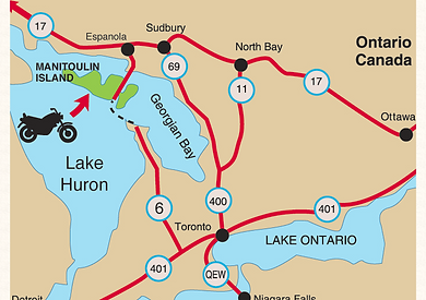 The largest freshwater island in the world, Manitoulin Island is a vacation paradise and motorcyclists dream! Manitoulin Island itself has 108 freshwater lakes, some of which have their own islands. Around every corner is another breath-taking view! If you've experienced it before, welcome back. If not, you owe it to yourself to check this ride off your bucket list!
